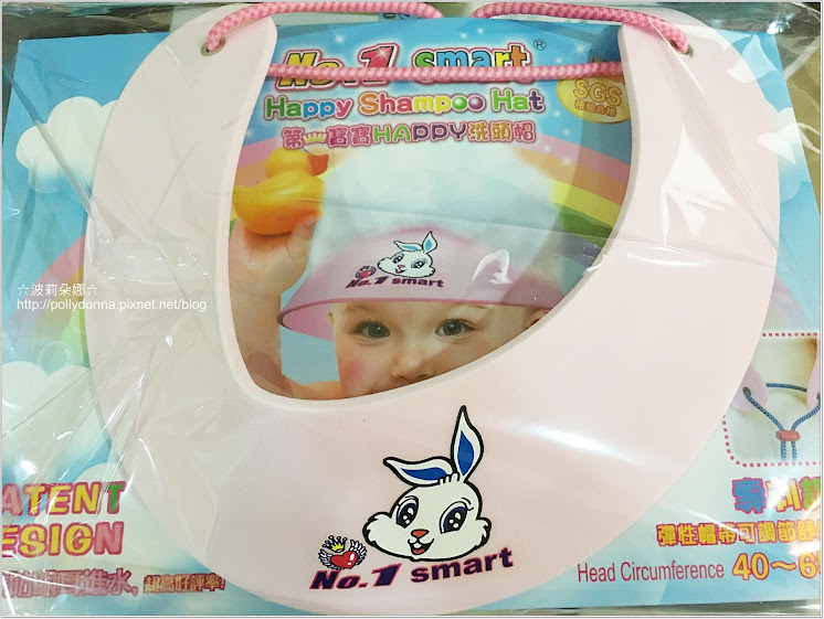 然後我一樣會先幫她洗頭,我還買了第一寶寶洗頭帽,這是我看蠻多媽咪推薦才買的,後面的帶子是可以調整長度的,就是可以配合寶寶頭圍大小調整。