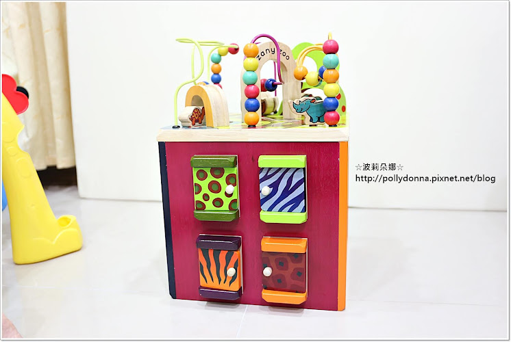 B.Toys是美國品牌,它的玩具可以幫助幼兒感覺統合發展,而且顏色鮮艷能吸引孩子目光,更重要的是標榜無毒(無塑化劑、雙酚A、鉛等),一旦認識這個品牌,就會像栽入一個無底洞,會不停想要買各式各樣的感統玩具回來讓小孩玩╮(╯▽╰)╭。