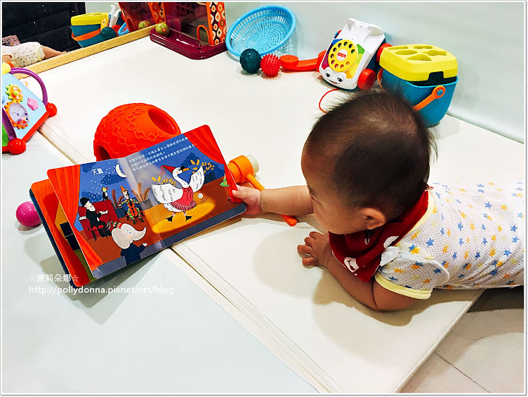 拿著各式各樣的繪本,自導自演的念給躺著的嬰兒聽,看他專注的聽我念書,甚至開心的反應,還頗有成就感。