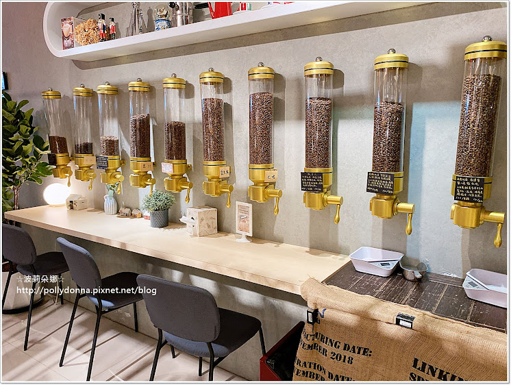 這裡放了一排咖啡豆,老闆會介紹豆子,並讓客人聞香,再決定要點哪一款。