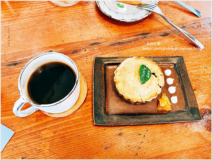▲黑咖啡+溫熱肉桂蘋果塔,蘋果塔不會太甜膩,搭配黑咖啡剛好