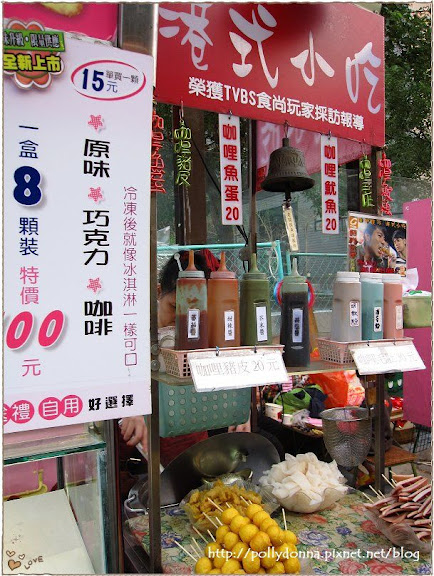 走近攤子老闆很熱情的拿了兩塊小卷給我們試吃