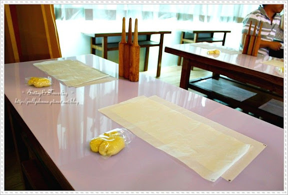 看著工作人員俐落的壓著餅,我們在做時如果不小心桿破,會很小心的修補