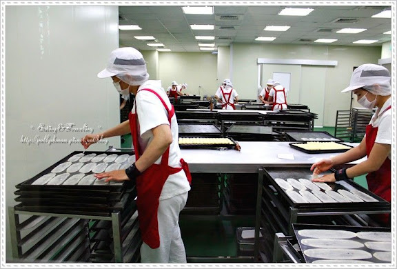利用等待的時間我們先去一旁聽導覽解說,觀看透明窗戶內正在製餅過程
