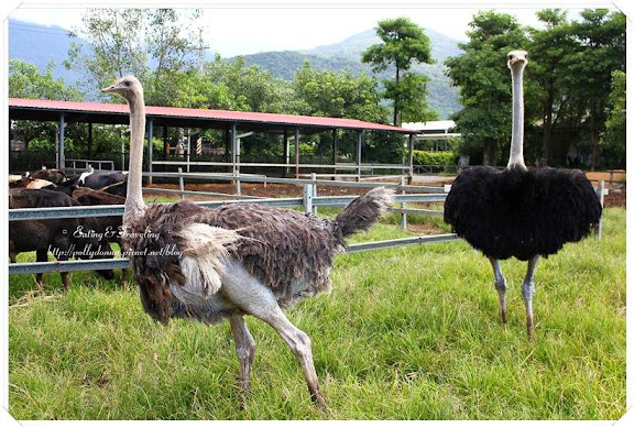 吃飽喝足後,就到牧場週邊晃晃,這裡的牧場真的好小,一眼望到底,乳牛就在眼前,除了牛還有鴕鳥,很多人直接拔草餵鴕鳥,鴕鳥也吃得津津有味,鴕鳥靠近柵欄時,一邊想近距離和牠合照,但是又擔心會被鴕鳥啄,畢竟才聽到有人說剛剛被啄。不過這裡也不是所有的牛都很漂亮,有一小區的牛看起來超級髒,灰黑色的皮,上面好多小蚊蟲在爬。