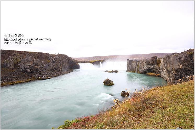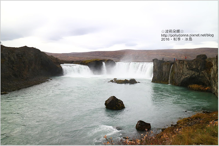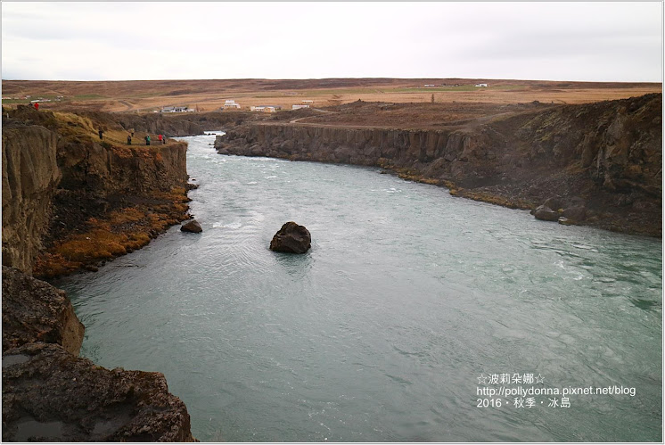 Goðafoss不像昨天看到的Dettifoss呈現灰泥水色,Goðafoss是淡綠色的,看起來清爽很多