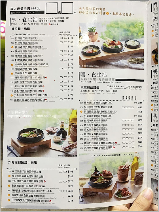 主要有拉麵/烏龍麵、豆腐鍋、擔擔麵、咖哩、一些炸物和飲料,也有屬於下午茶的吐司套餐,不過這部分我就沒吃過了。