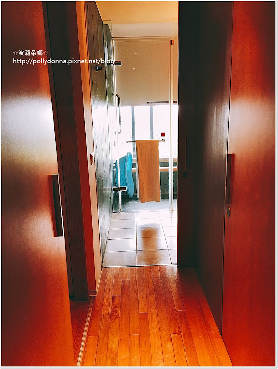 我們入住的是雙人房,進門是玄關,可以擺下雙人推車但是有點擠,往前走右邊的門是洗手間,前面是浴室,左邊的門是房間。