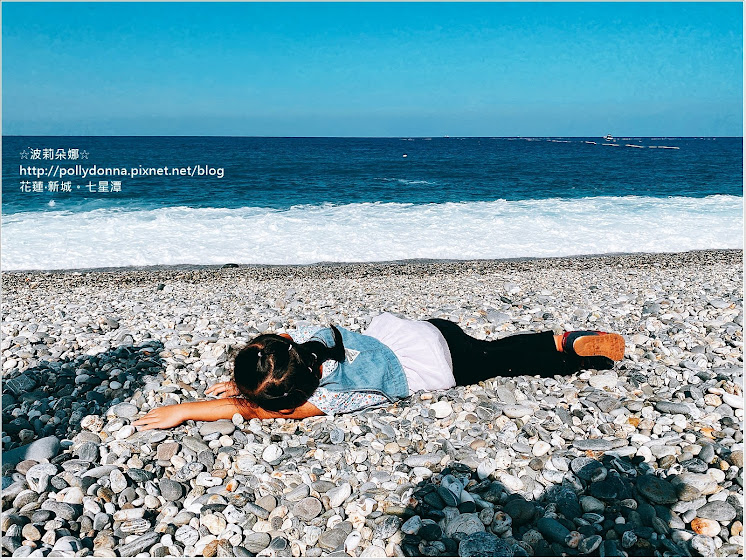 七星潭是花蓮必造訪景點之一,不能玩水但是海藍的很療癒,來過七星潭幾次,都覺得是個很熱然後沒辦法玩水有點無聊的地方,但這次帶全家大小孩,意外的成為很受歡迎的景點,孩子們在這裡堆石頭堆的超開心,還說躺著很舒服