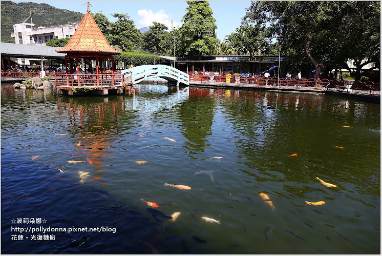 光復糖廠應該算是我花蓮知名景點中少數沒有造訪過的地方,原本我的認知是,這裡會有一些日式建築可以參觀、拍照,讓大家走走看看,小孩跑跑的地方,沒想到就是一個商店圈+大魚池,吃冰、餵魚,然後就結束了,原本的日式宿舍目前經營旅館,提供住宿服務,所以只能看外觀無法參觀,是這趟行程中覺得最不需要造訪最虛的景點。